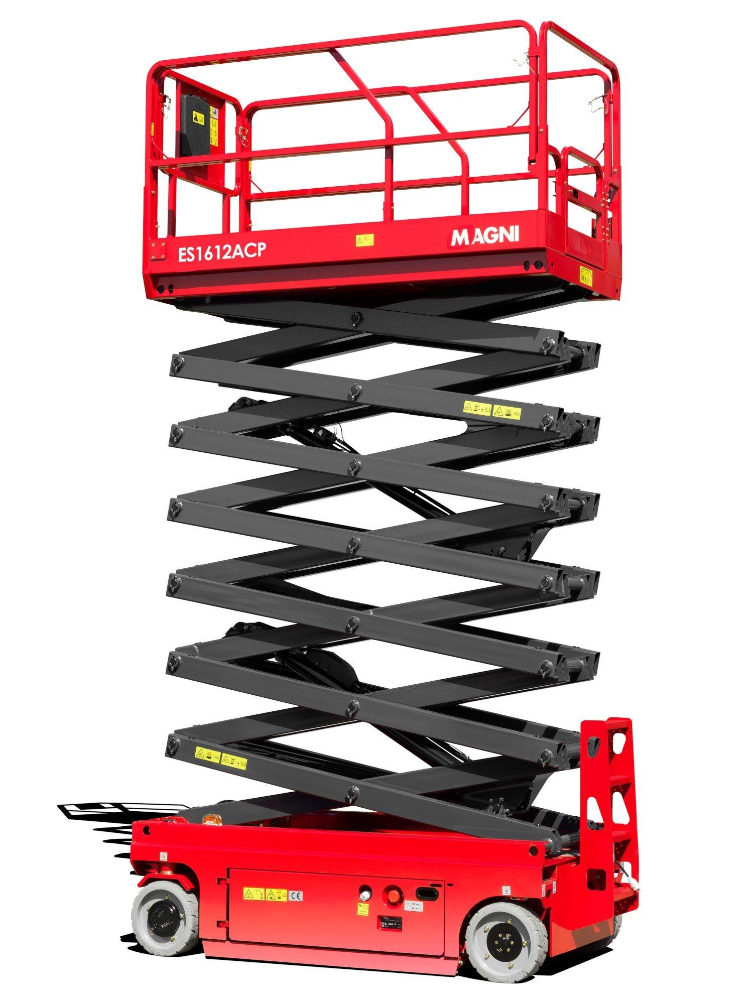 ES1612ACP elektrikli makaslı platform, maksimum 250 kg taşıma kapasitesine ve 15,7 m çalışma yüksekliğine sahiptir. Çalışma platformuna eklenen uzantı sayesinde, artık daha geniş bir hareket alanı mümkün olup, operatörlerin iş sahasındaki faaliyetlerini daha kolay ve daha güvenli hale getiriyor. Platform hareketliliği, sıfır dönüş yarıçapı sağlamak için çelik kapaklı AC tahrik motorları aracılığıyla geliştirildi ve dar alanlarda manevra yaparken gelişmiş performanslar sunuyor. Bu enerji tasarruflu makaslı kaldırıcının emisyonsuz ve sessiz çalışması, onu içte ve dışta tüm çalışma ortamları için mükemmel kılar.
