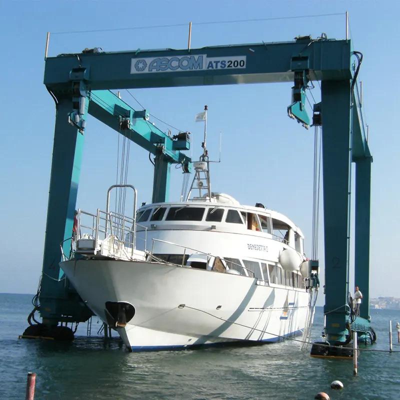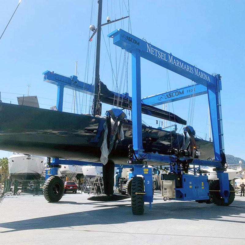 Çeşitli gemilerin transferi ve denize indirilmesi için marinalar ve tersaneler için lastikli kendinden tahrikli (dizel veya elektrik gücü) Tekne Vinçleri